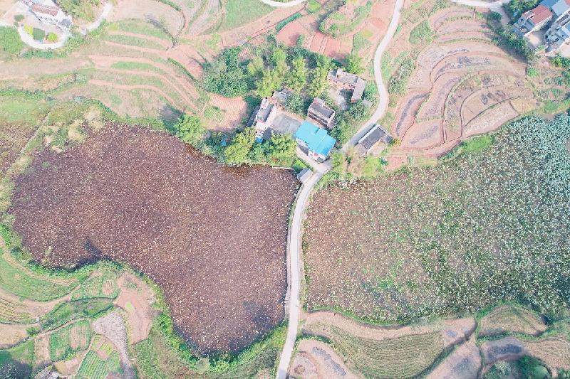 走进立石镇水鸭池村,夏季里亭亭玉立的荷花逐渐枯萎落败,但是水下的淤泥里却埋藏着金秋丰硕的果实。