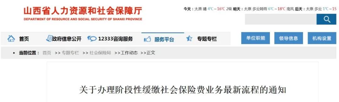 近日,山西省人力资源和社会保障厅发布《关于办理阶段性缓缴社会保险费业务最新流程的通知》,困难企业(单位)按以下最新流程办理阶段性缓缴社会保险费业务: