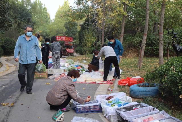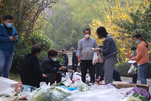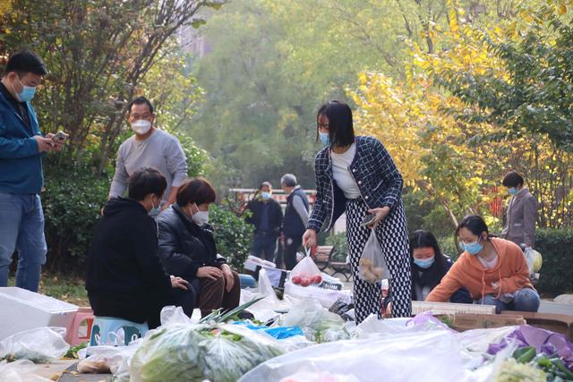 “每天凌晨就跑到北四环外菜农那里采购,新鲜得很,都不重样儿,三十来种,居民一大早不用出小区都能买到菜。”卖菜的郭师傅不到五十岁,很能干,“菜价比平时贵个三五毛钱。”