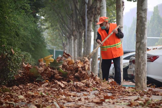 深秋,道路两侧积着一层厚厚的落叶。时隔10多天,年近花甲的环卫工王师傅来到分包的路段,挥动扫帚,不停清扫,“你看,活在这搁着,得赶紧打扫干净,让一切都好起来。”