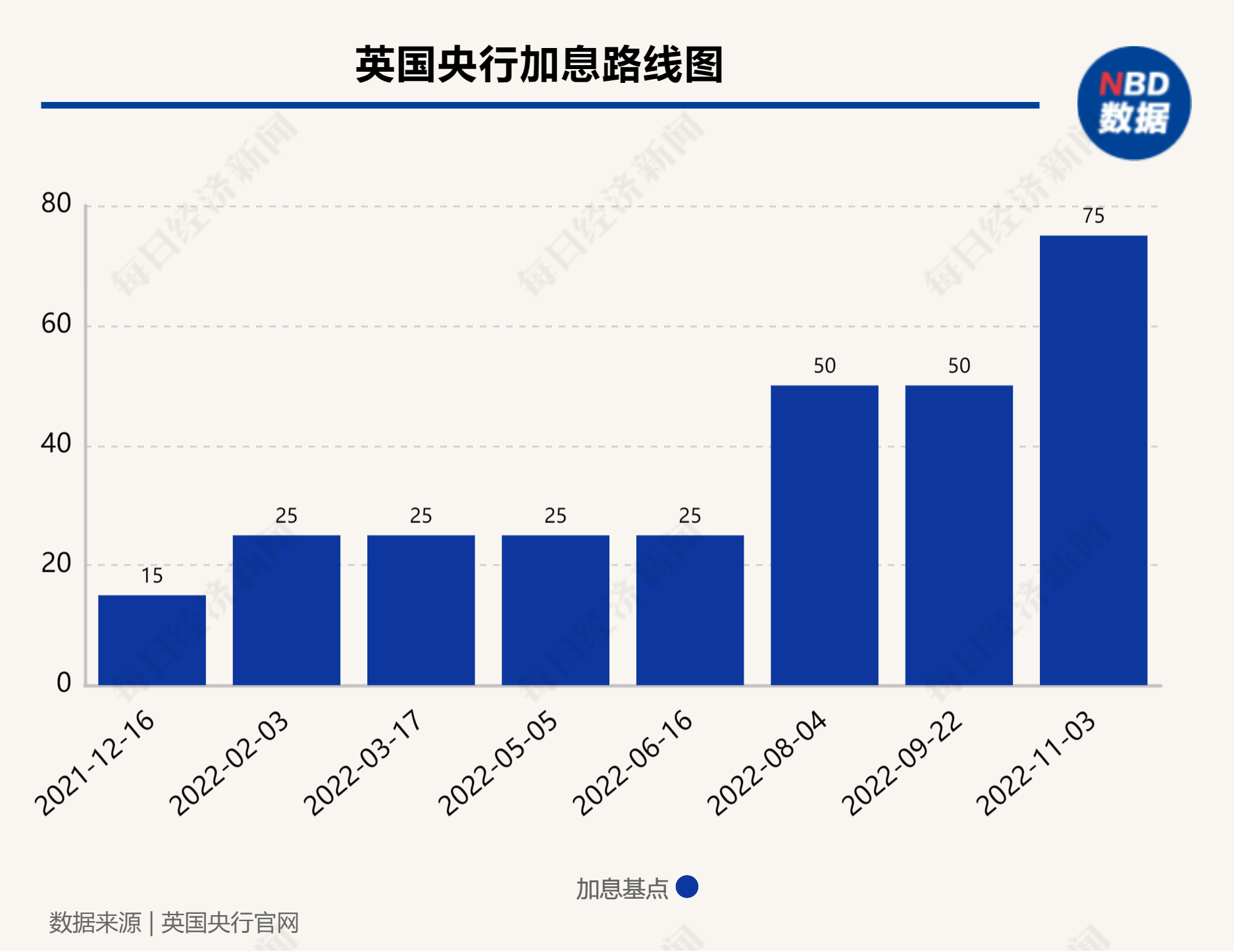 当地时间11月3日,英国央行公布利率决议,宣布加息75个基点,将基准利率从2.25%上调至3.00%,这是去年12月开启本轮加息周期以来该行第八次加息,也是1989年以来英国央行最大力度的单次加息。该行目前的利率水平也由此达到2008年11月以来最高。