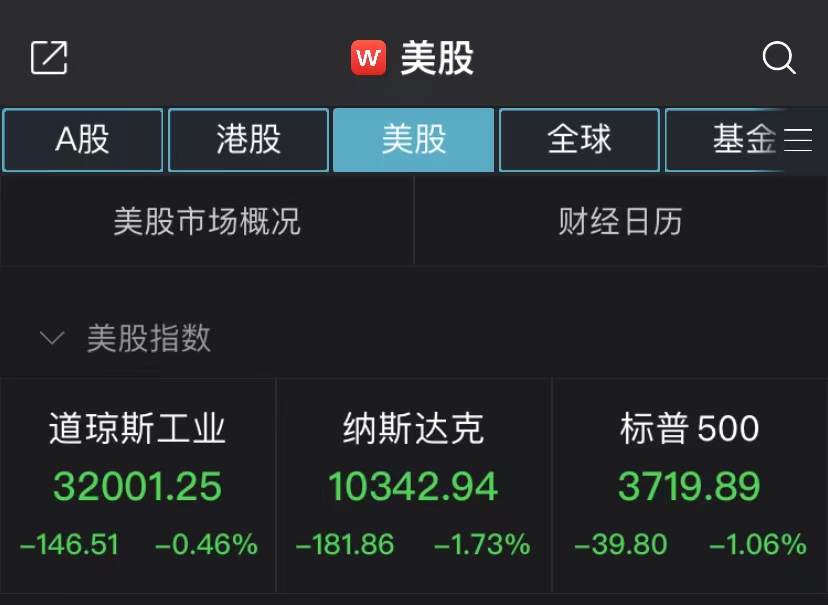 中新经纬11月4日电 美股三大指数低开后一度下挫走出险情,触底后震荡回温,道指盘中数度触红,临近收盘再次转弱。截至收盘,道指跌0.46%、纳指跌1.73%、标普500指数跌1.06%。