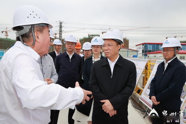 刘建洋在中烯石墨烯系列新材料项目现场,调研高新技术产业和工业园区建设情况。