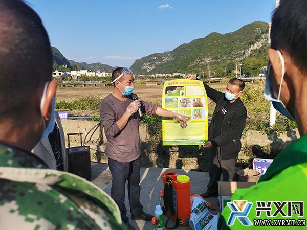 培训现场,黔西南州农业农村局和市农业农村局的农技人员围绕稻水象甲、福寿螺等外来有害生物的形态、传播途径、防治方法等内容进行了详细讲解,并组织农户到田间地头对有害生物的灭除进行现场示范操作指导,给大家发放相关防治药物等。