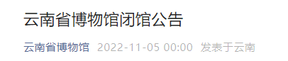 因展厅线路检修,云南省博物馆将于2022年11月5日(周六)、6日(周日)闭馆,11月8日起正常开放(11月7日周一例行闭馆)。由此给您带来不便,敬请谅解。