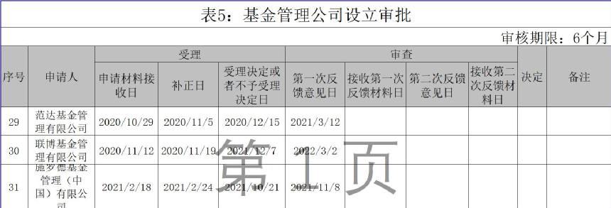 在2021年8月5日,富达基金获得核准设立的批复,富达亚洲控股私人有限公司(FIL ASIA HOLDINGS PTE. LIMITED)出资3000万美元,持股比例为100%。而2021年9月22日,关于核准设立路博迈基金管理(中国)有限公司的批复,其中股东方是路博迈投资顾问有限公司,出资1.5亿元,持股比例100%。此外,2021年,施罗德基金管理(中国)有限公司获得设立申请文件反馈意见。