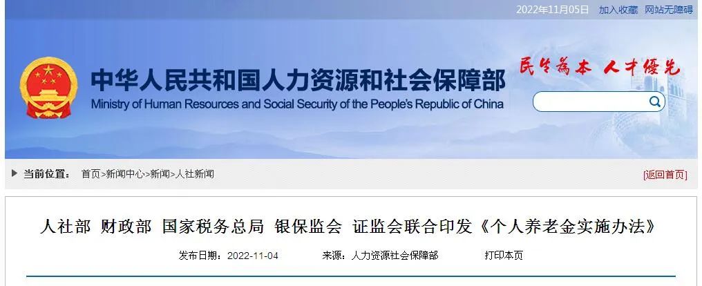 近日,人力资源社会保障部、财政部、国家税务总局、银保监会、证监会联合印发《个人养老金实施办法》(人社部发〔2022〕70号,以下简称《实施办法》)。出台《实施办法》是贯彻落实党中央、国务院关于健全多层次、多支柱养老保险体系,规范发展第三支柱养老保险的重要举措,也是推进国务院关于推动个人养老金发展的意见落实落细的具体做法。
