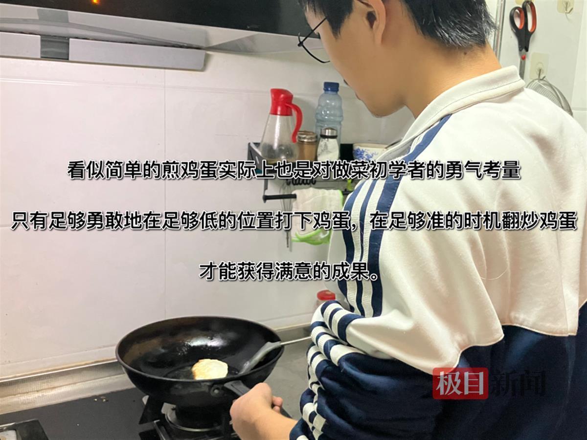 有同学从做菜中得到了乐趣,也有从尝试中体会到艰辛,更有从菜品中总结人生哲理。不常下厨的李逍遥说,他所做的菜品炸鸡蛋,讲求“快”“准”“狠”,打蛋要快入锅,不然蛋液流到手上了,投蛋要不高不低,对准锅底,太高投蛋,油花四溅,太低,会烫到手,狠狠地炸一通,才能翻面,否则粘锅,简单煎蛋是对勇者的考验。而厨房老手王皓斓对此不屑一顾。“因为父母上班,我早早完成从厨房小白到大厨的转变,这道考验刀工的牛肉炒三丝就是我厨艺的体现。”
