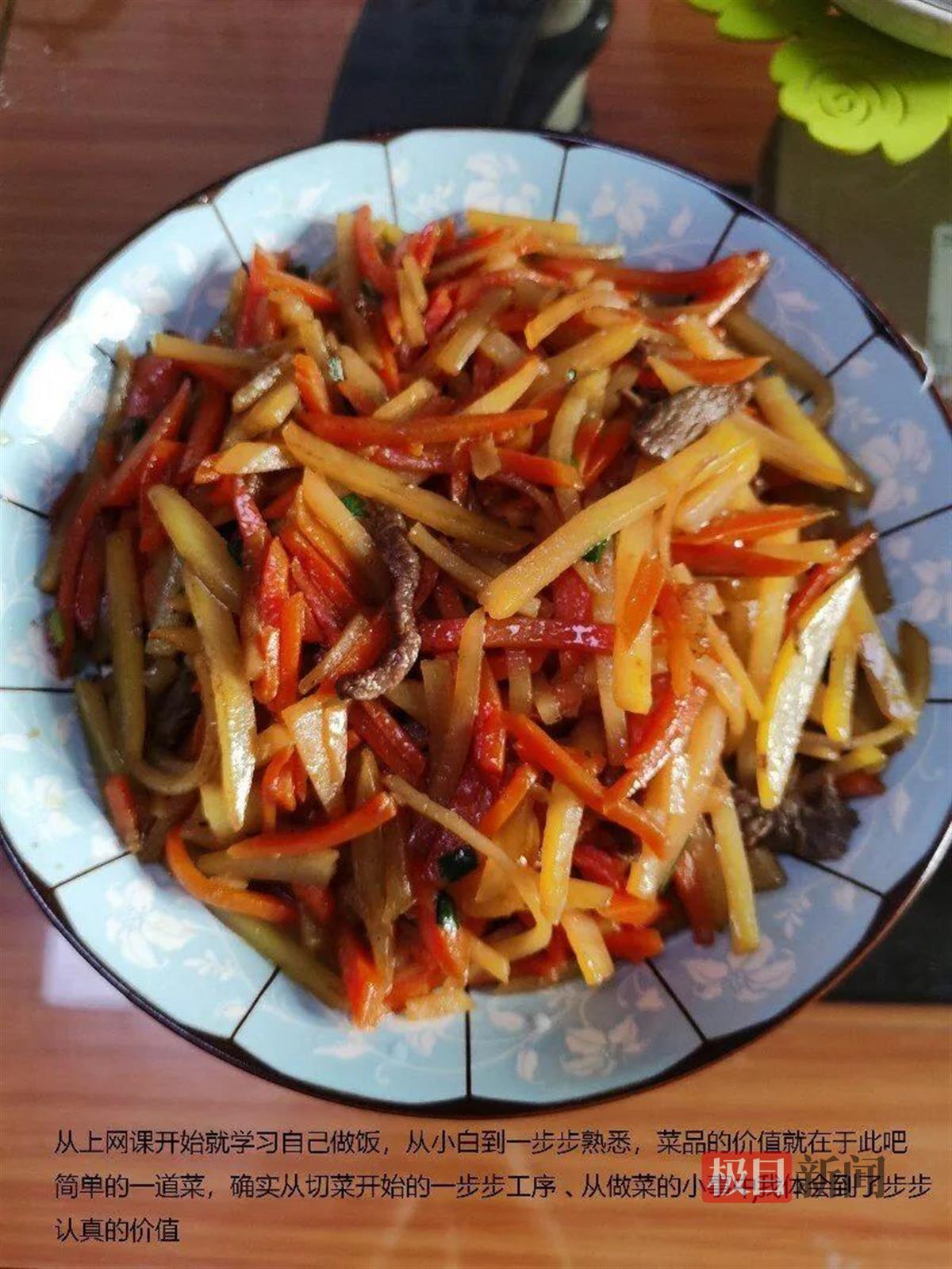 参加此次线上美食节的不仅有学生,该班部分学生家长也加入进来。“有一天下班,看到你已经把晚饭从厨房端出,爸爸既欣慰又高兴!”该班王皓斓的爸爸说,看到孩子帮忙分担家务,他感觉孩子长大了,希望孩子未来能保持炒菜时的探索精神,刻苦学习,向着既定目标努力。
