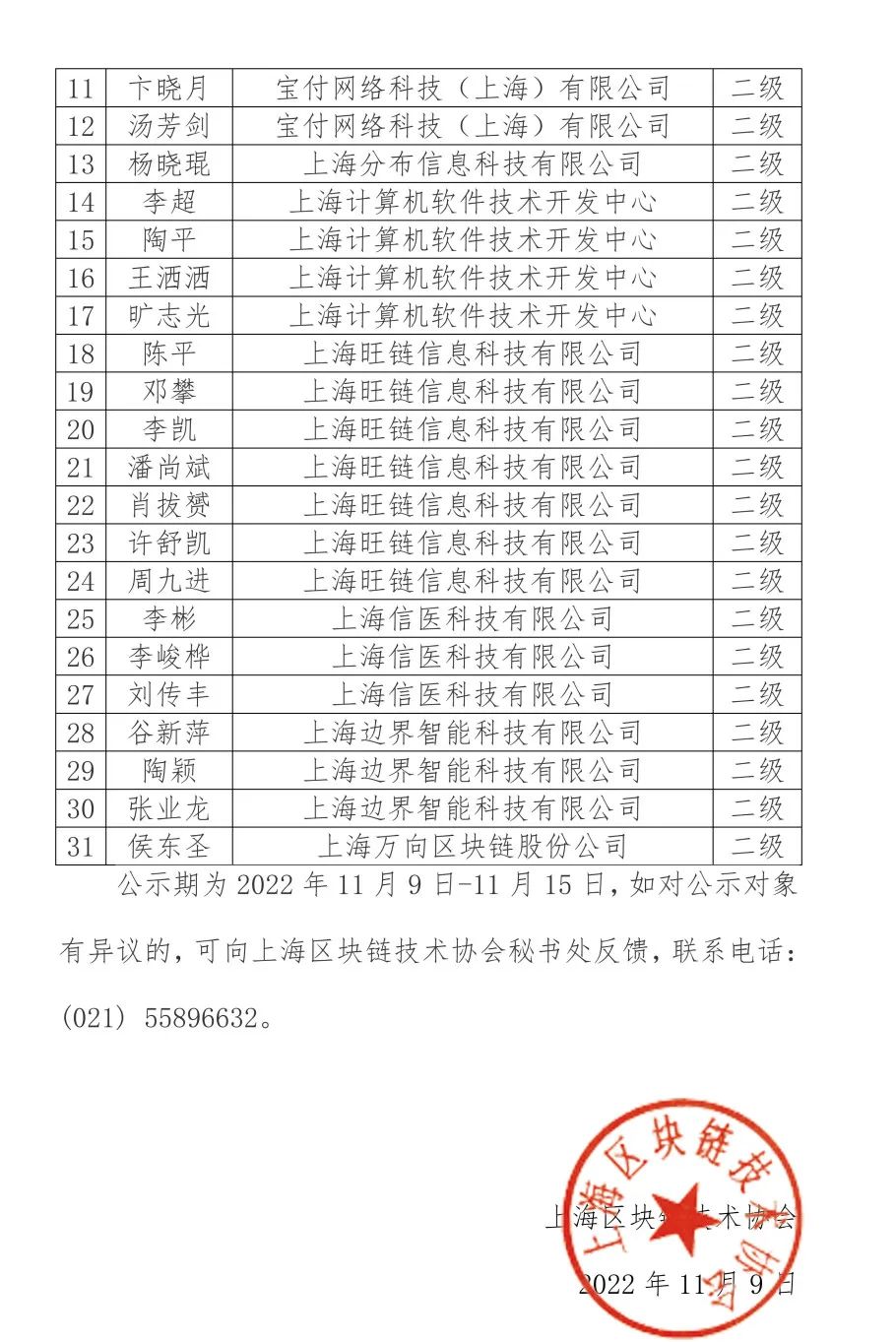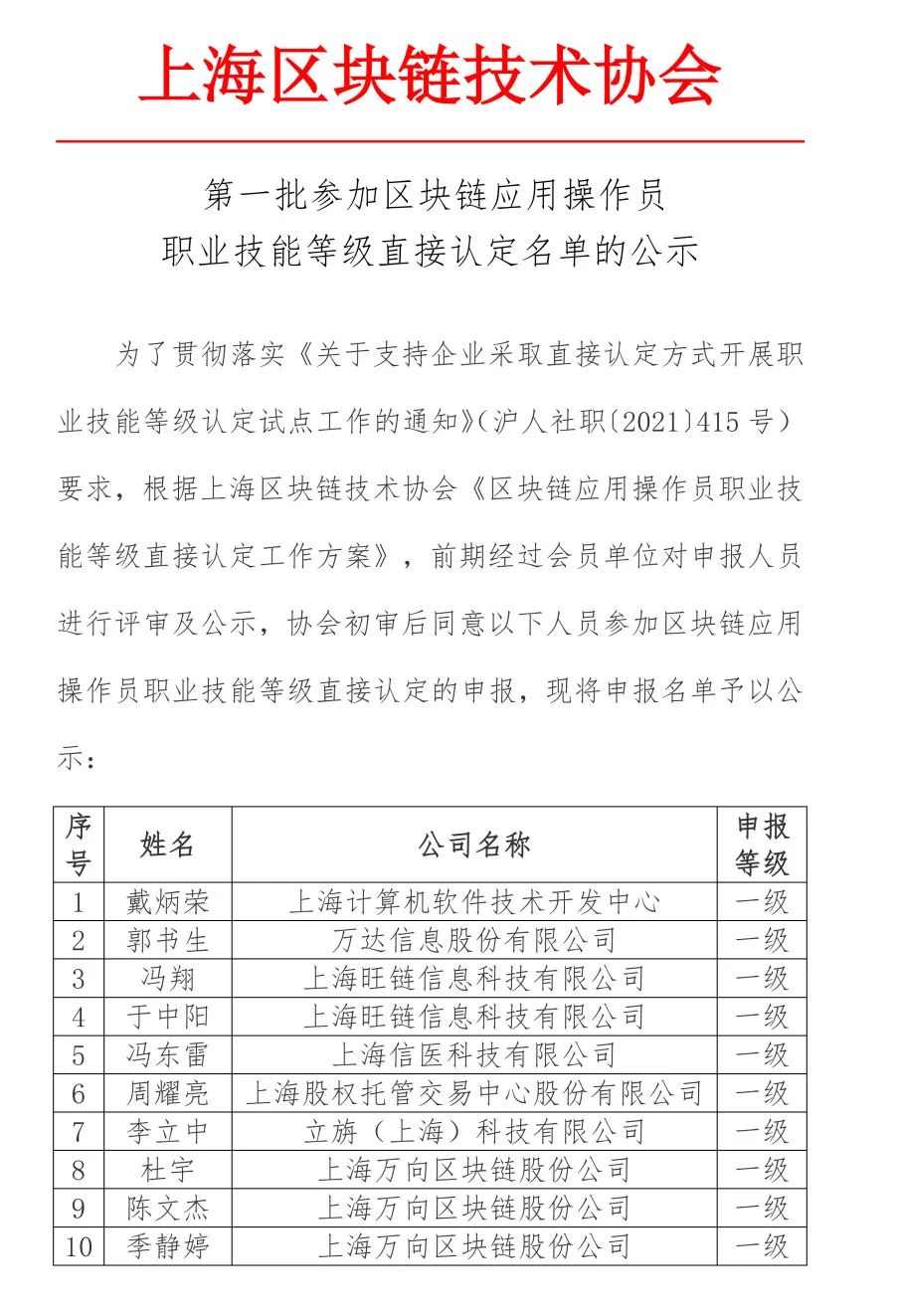 名单公示 | 第一批参加区块链应用操作员职业技能等级直接认定名单