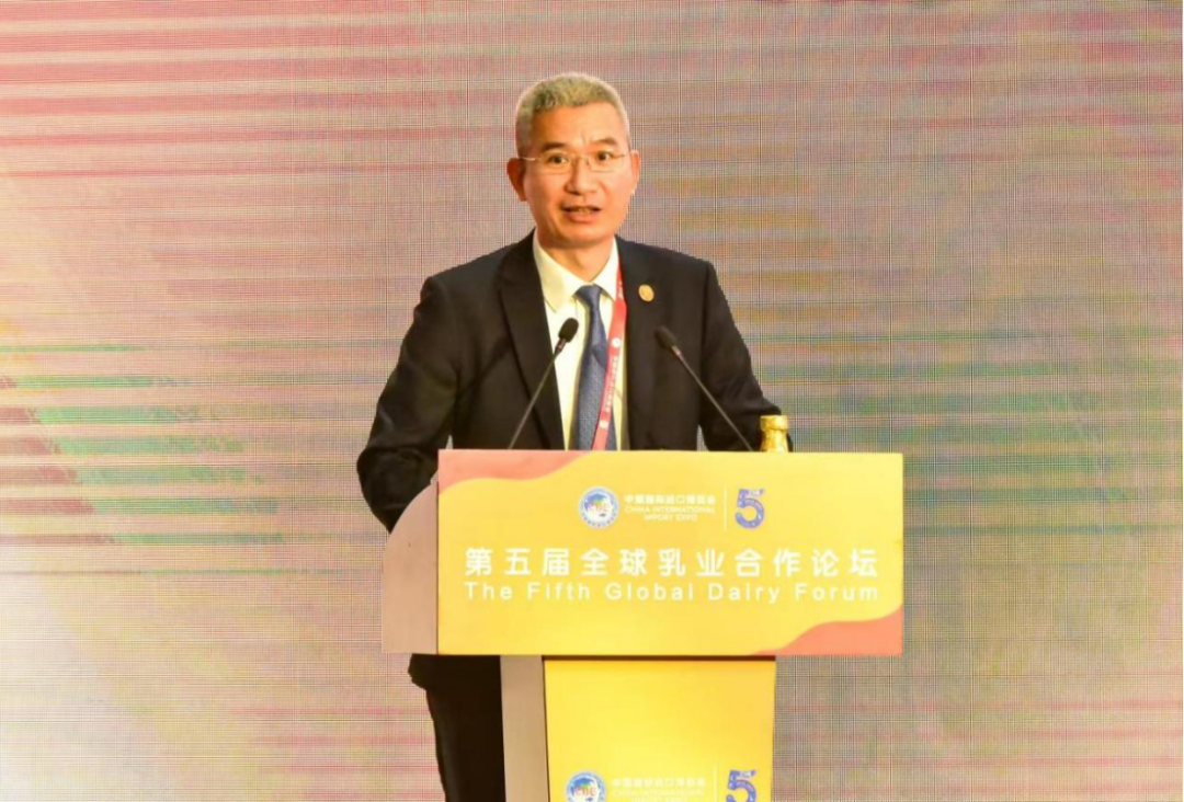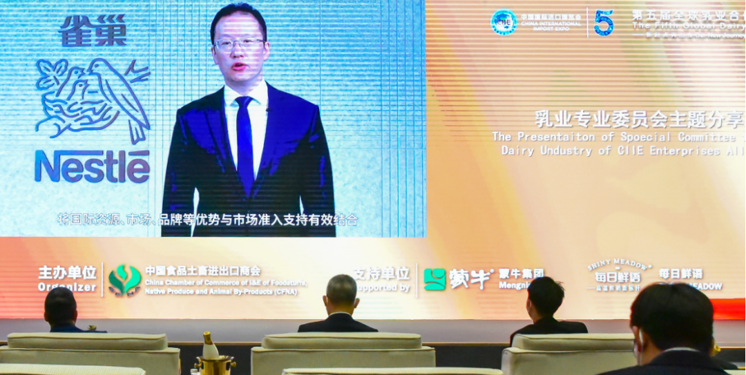 11月6日,第五届全球乳业合作论坛在国家会展中心(上海)顺利举办。期间,进博会展盟乳业专委会和中国食品土畜进出口商会共同主办了乳业专委会主题分享会。商务部党组成员、副部长兼国际贸易谈判副代表凌激以视频形式致辞。海关总署、国家市场监督管理总局有关司局和进口博览局等单位代表出席活动并致辞。雀巢、恒天然、阿拉福兹等乳业专委会成员单位,乌拉圭、丹麦、法国、荷兰等各国驻华使领馆代表和美国乳品出口协会、蒙牛、每日鲜语等行业、企业、协会代表约500人线上、线下参会。