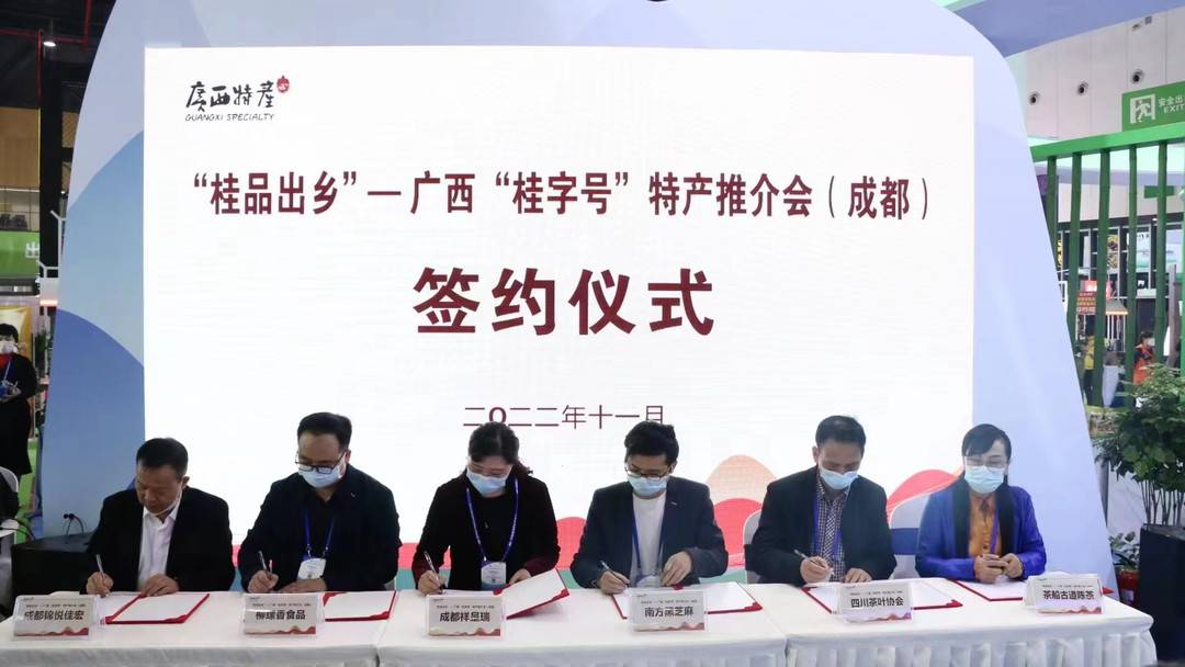 据悉,在推介会上,经会前对接洽谈,共促成3对企业达成签约意向,其中,南方黑芝麻集团股份有限公司、广西柳螺香食品科技有限公司、广西梧州茶船古道陈茶有限公司分别与成都祥呈瑞商贸有限公司、成都锦悦佳宏贸易有限公司、四川省茶叶行业协会现场签订合同,签约金额共计1.98亿元。