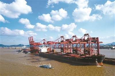 宁波舟山港北仑港区矿石码头生产作业场景。 蒋晓东 摄