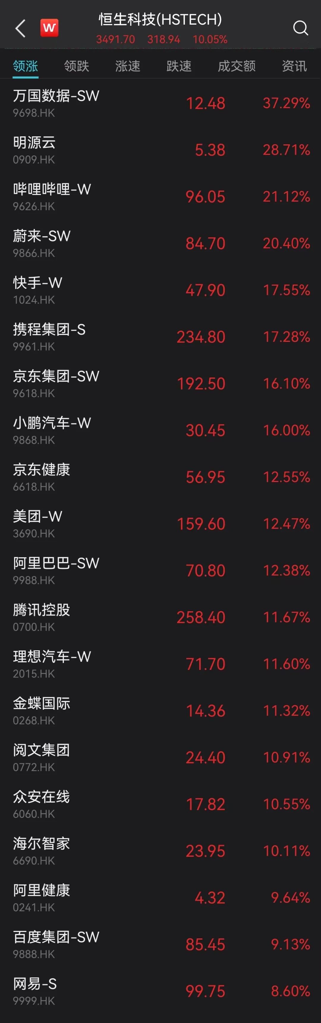 港股方面比较猛,恒生涨了超1200点,恒生科技指数暴涨超10%。广发策略戴康老师称,港股“天亮了”!建议重视港股战略性大底部,弹性比A股大。疫情修复逻辑为主、其次是美债利率筑顶,两者共同敏感的交集板块最优。