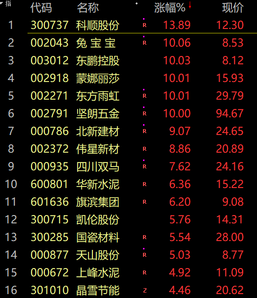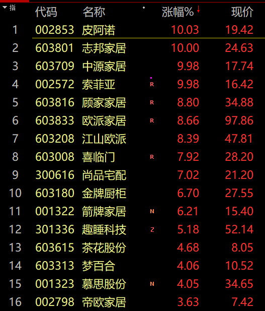 房地产板块掀涨停潮,并带动家居、建材等产业链走高。