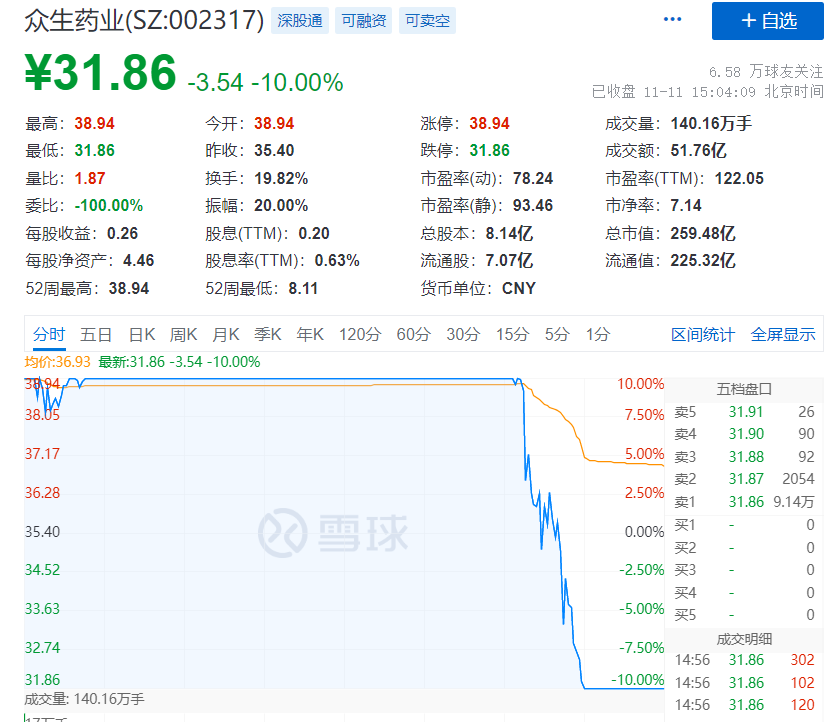 有散户还在涨停板因为买到众生药业沾沾自喜,结果下一秒就秒接了跌停板,一天吃了两个板,赢两次