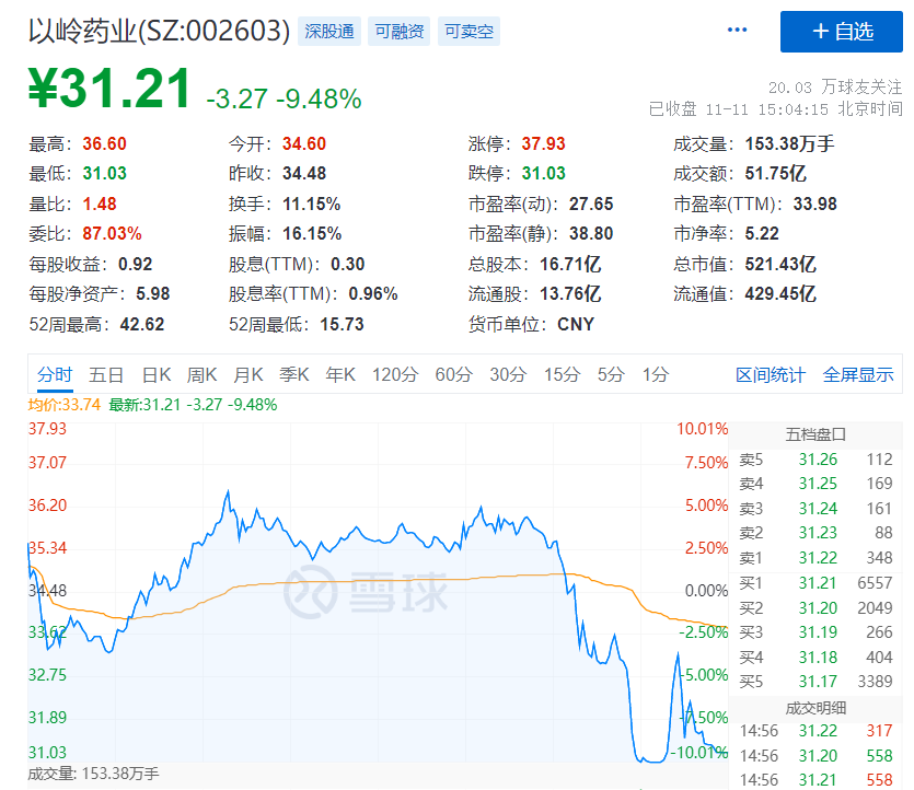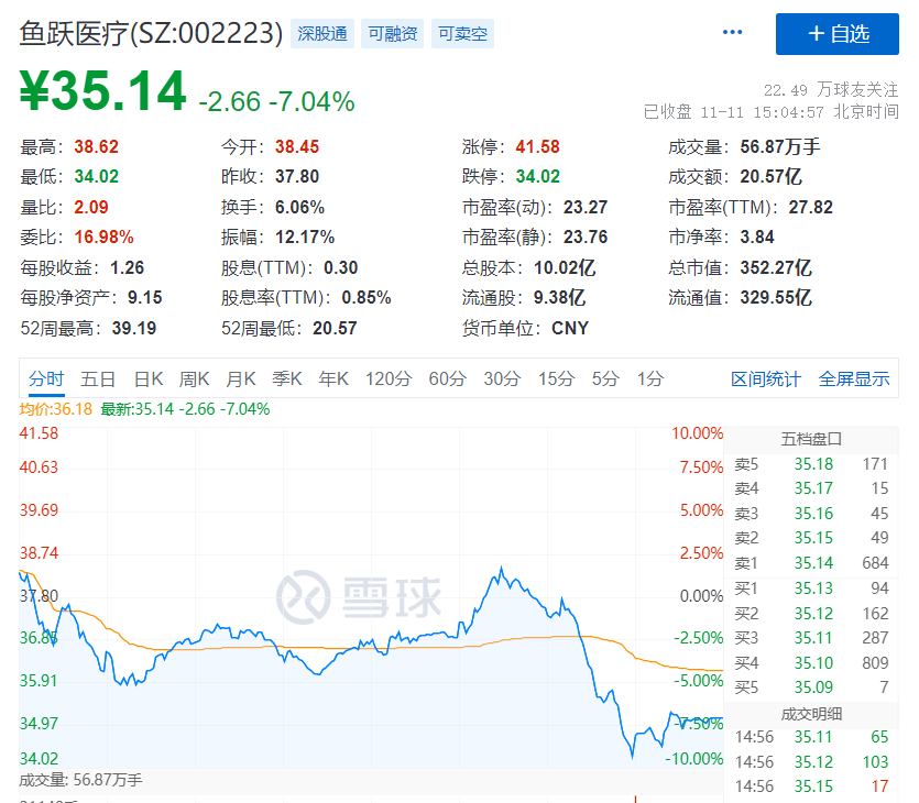 以岭药业、鱼跃医疗双双跳水逼近跌停。