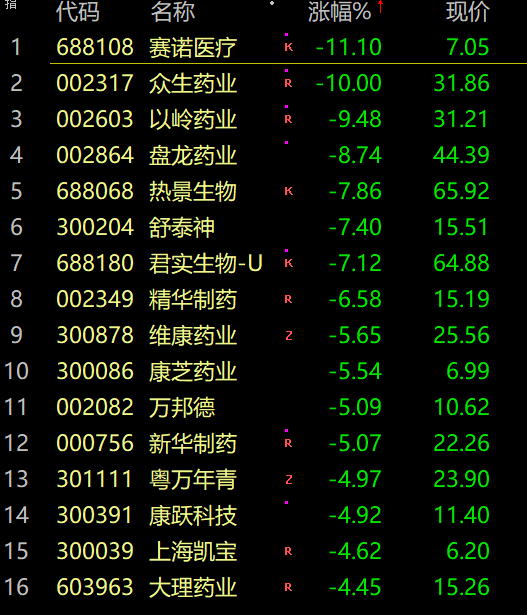 医药股午后大幅跳水,新冠药龙头众生药业上演天地板,康希诺跌超15%,全天振幅超30%,泰林生物、赛诺医疗跌逾10%。