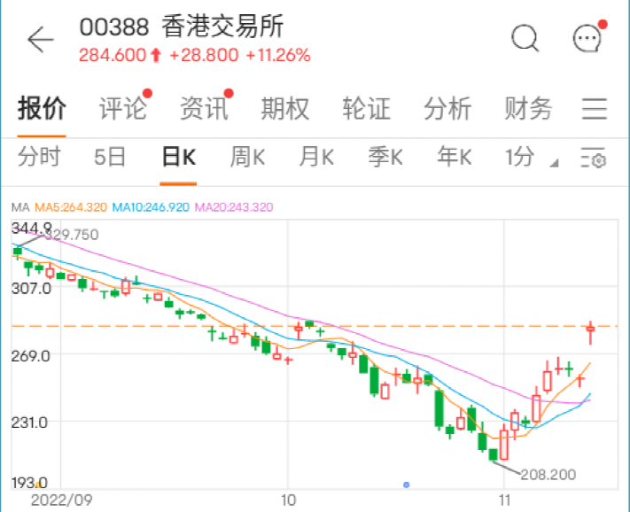 市场出现多个反映港股回暖的信号,港交所个股今日大涨11%,股价创一个月来新高,市场预期随着大市向好,港股交易将逐步回暖。