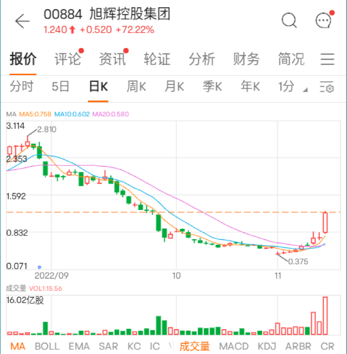受此影响,地产反弹龙头旭辉大涨72%,近一周涨幅达1.6倍,新城发展、碧桂园等涨幅分别达54%、35%。