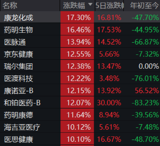 医药整体向好,包括康龙化成、药明生物等个股反弹超16%。