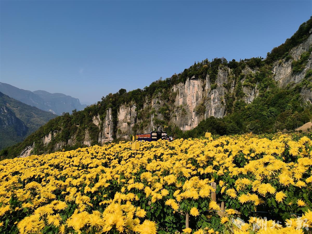 在五峰镇怀抱窝村,漫山遍野的金丝皇菊迎来丰收,金色花海在阳光的照耀下如诗如画、美不胜收。近年来,怀抱窝村“两委”立足当地耕地稀少、劳动力欠缺、土地撂荒严重的实际情况,探索发展“一村一品”特色产业,以“党员+合作社+农户”的发展模式,引导村民发展以金丝皇菊为代表的特色种植业,取得了良好的经济和生态效益。