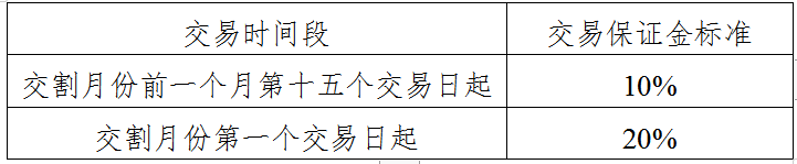 第十三条 工业硅期货合约的最低交易保证金为合约价值的5%。自进入交割月份前一个月第十五个交易日起,交易所将分时间段逐步提高合约的交易保证金标准,交易保证金标准为: