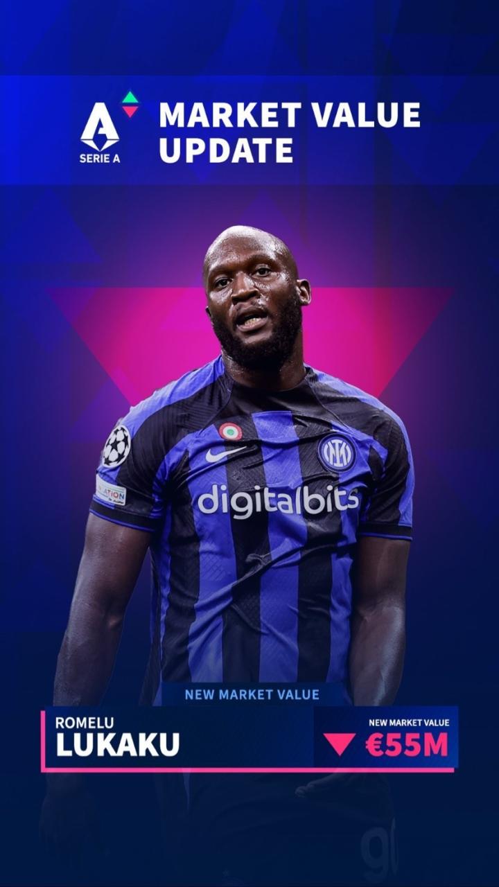 12 卢卡库 国米 5500万欧(下跌1500万欧)