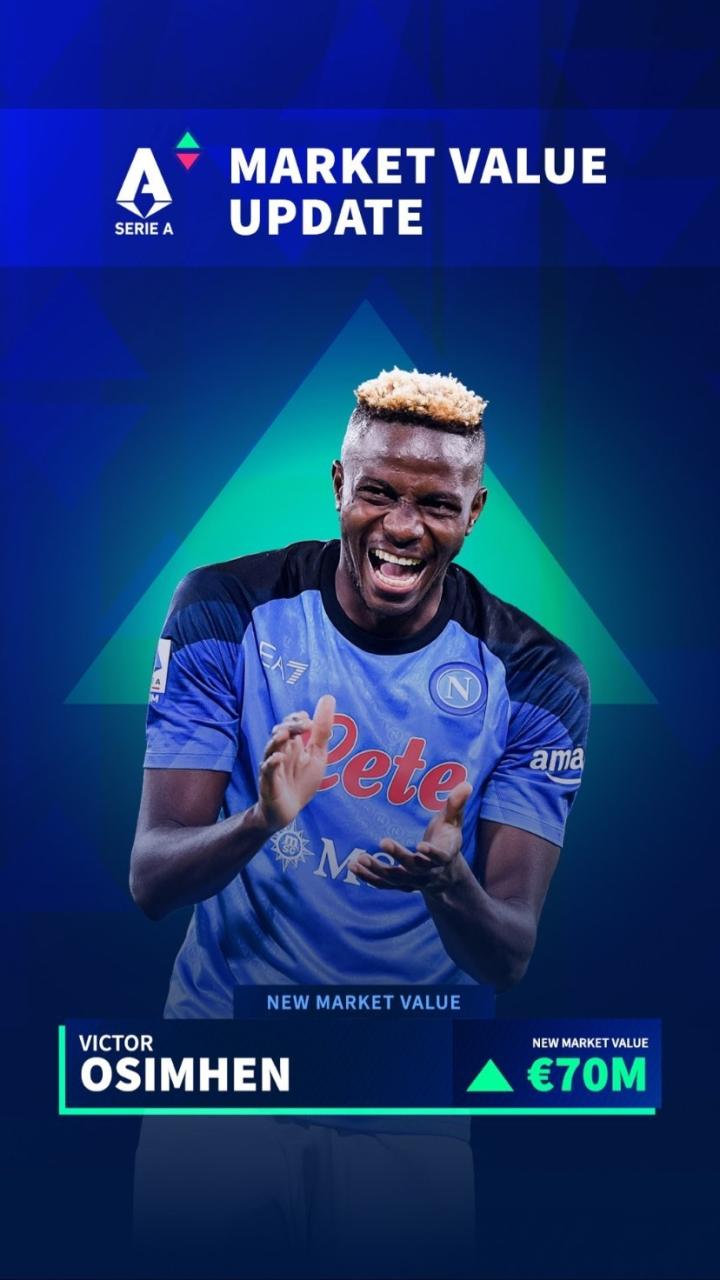 4 奥斯梅恩 那不勒斯 7000万欧(上涨500万欧)