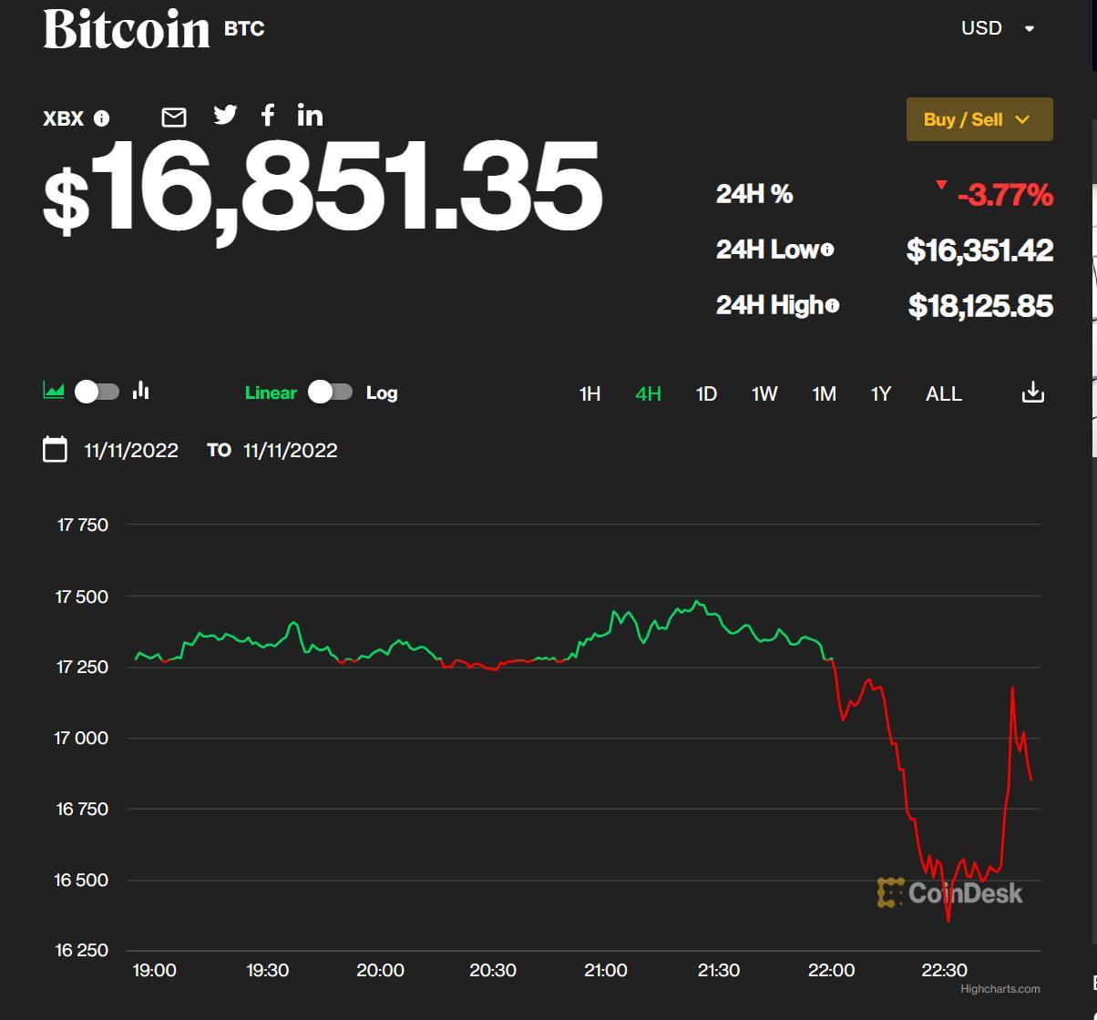 消息发布后,市值最大的数字货币比特币24小时内跌幅一度超5%,后跌幅收窄,但币价仍跌穿1.7万美元整数位。