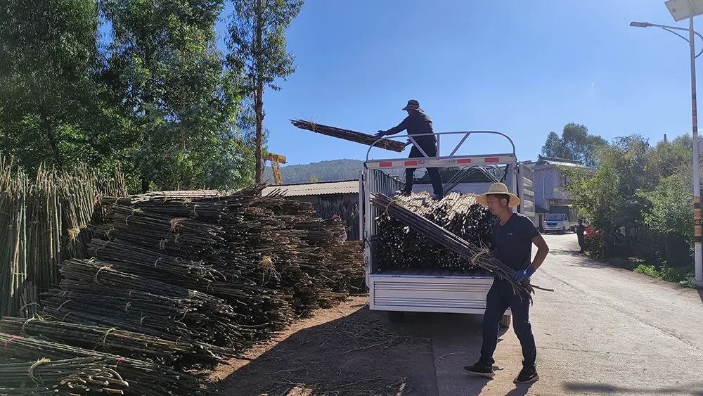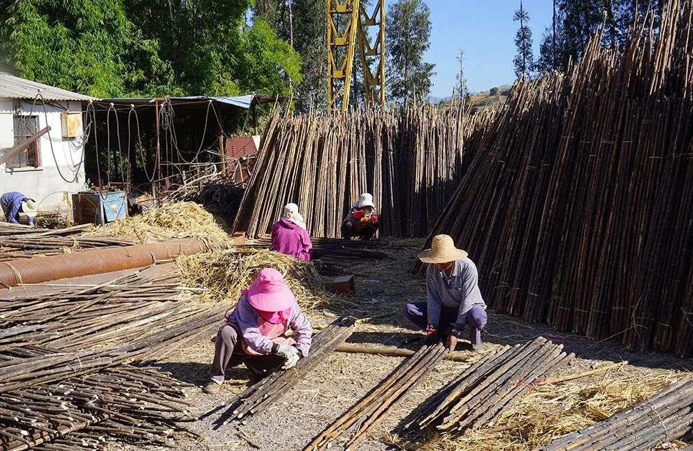 初冬时节,峨山县甸中镇甸中社区一派繁忙景象,数名工人忙着分拣葵花秆,质量达标的葵花秆经整理捆扎后整齐码放在一旁,准备运往广西销售。曾经被当作废弃物的葵花秆,摇身一变成了助农增收的“香饽饽”。