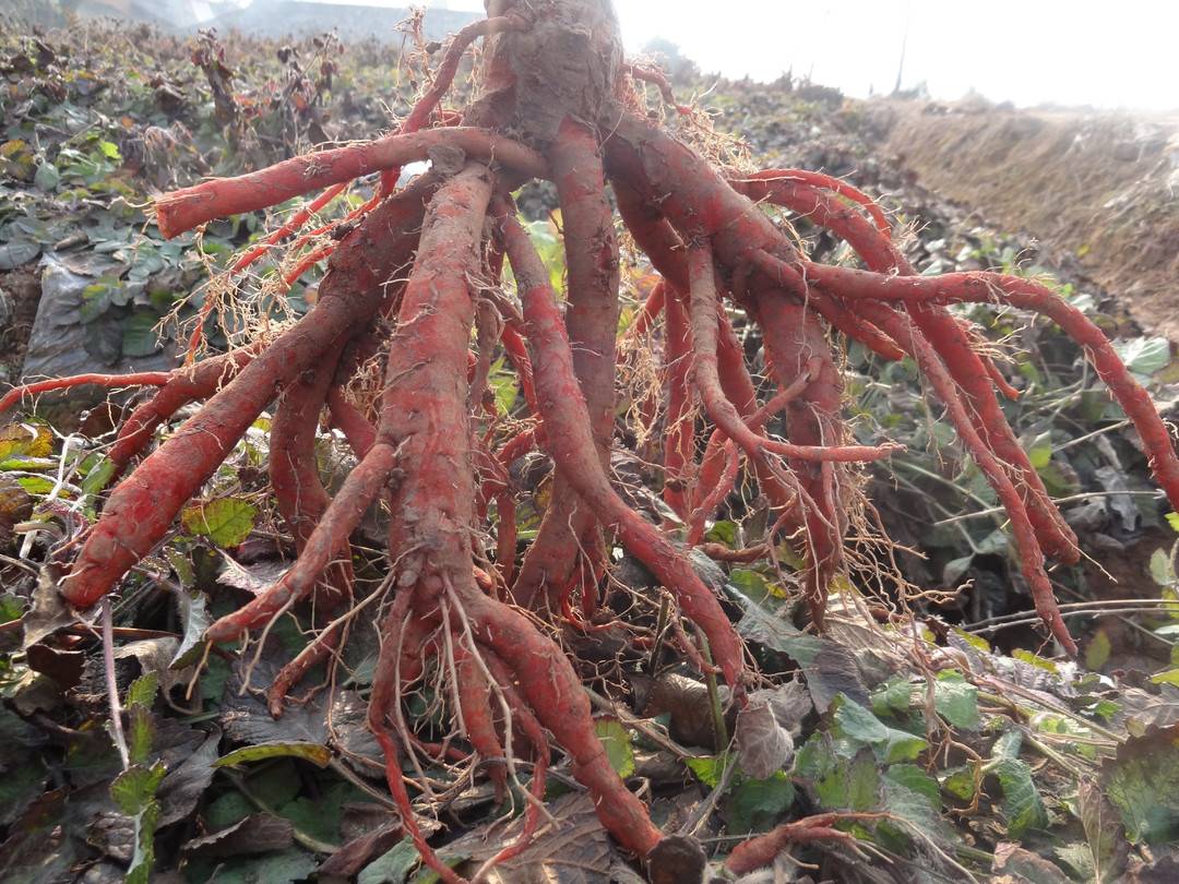 丹参在中江特殊生态环境下,分化发育形成的独特生态类型,鲜根砖红色,粗短肥厚,断面木心细小或无木心,2008年,中江丹参被批准为“国家地理标志保护产品”。