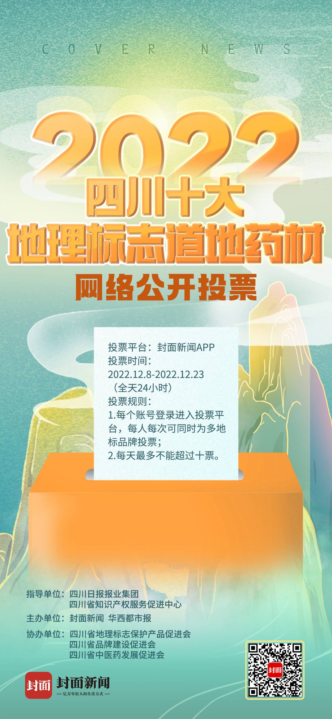 12月8日,在四川省知识产权服务促进中心、四川日报报业集团共同指导下,由封面新闻、华西都市报主办的2022“四川十大地理标志道地药材”评选活动正式启动。