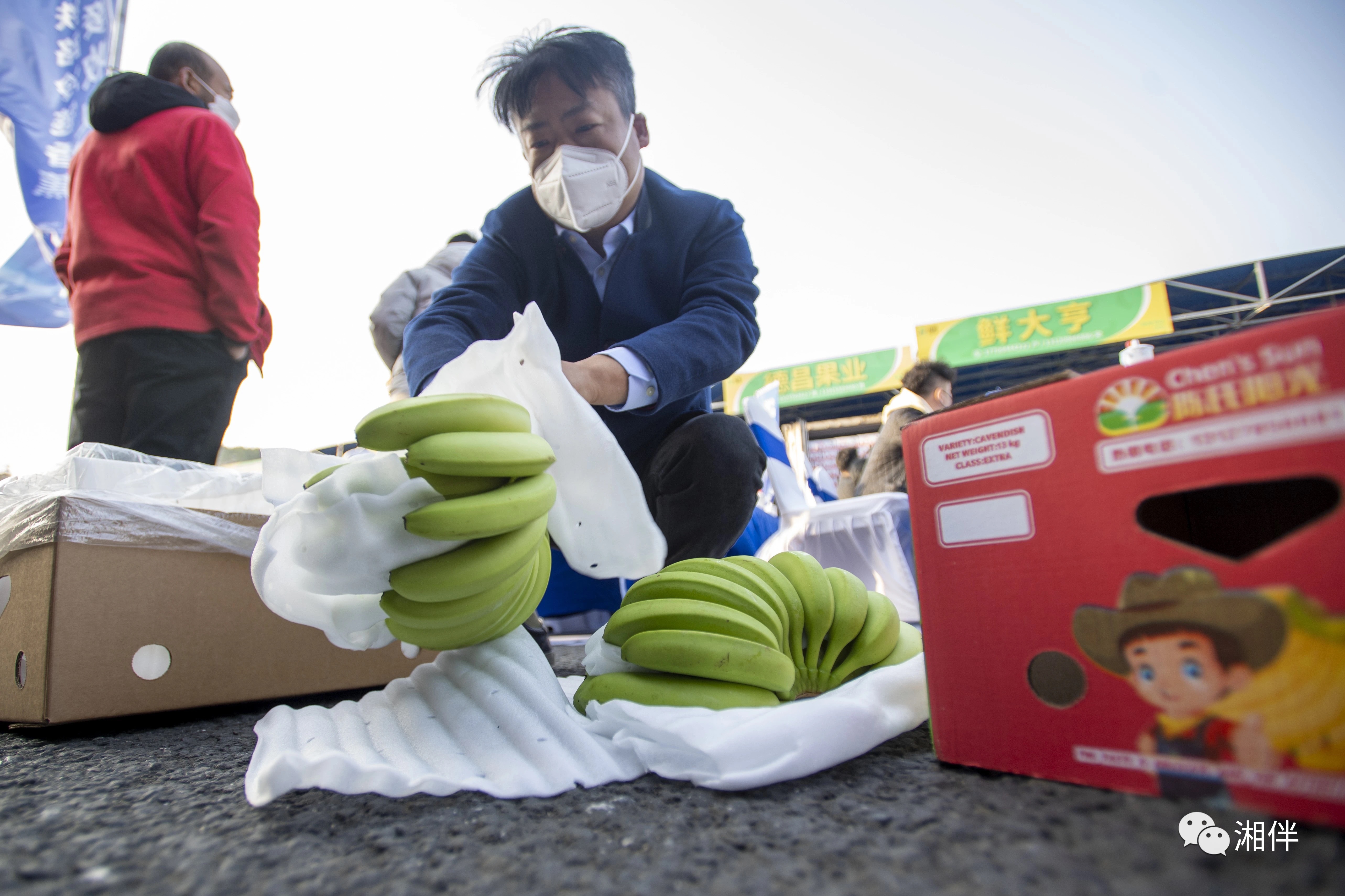 12月12日下午,湖南(红星)农产品流通产业园运来好几货车香蕉,刚一开柜,就被天南海北的经销商抢购一空。