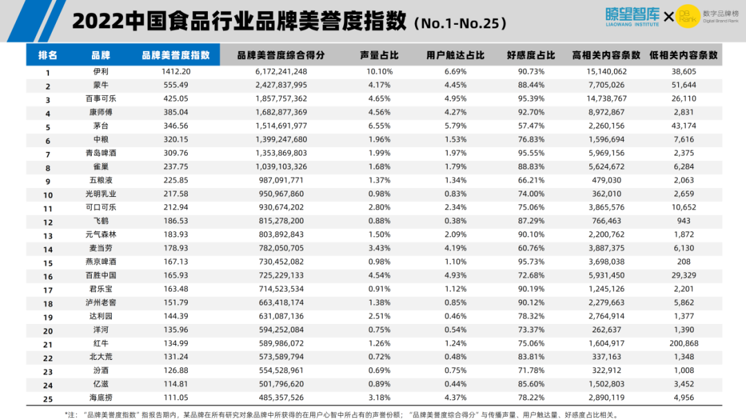 研究报告以2021年11月1日-2022年10月31日为数据观测窗口,基于全网新闻媒体报道和用户口碑评价的1.44亿条数据为基础,呈现了各食品企业的年度美誉度建设状况。
