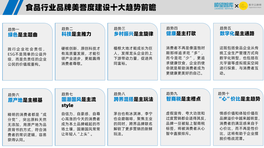 研究报告还发布了“食品行业品牌美誉度建设十大趋势前瞻”。