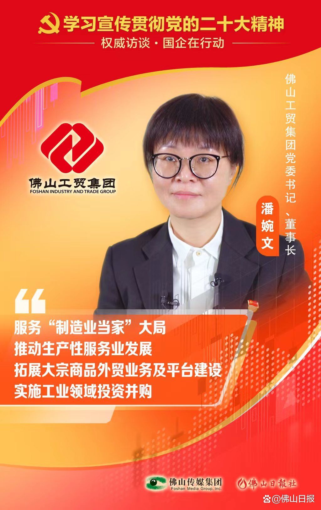 “我们将坚定信心、笃行不怠,补短板、强优势,深入推进国资国企改革,加快做强做优做大,服务支撑好佛山传统优势制造业转型发展。”佛山市工贸集团有限公司(以下简称“佛山工贸集团”)党委书记、董事长潘婉文接受佛山传媒集团专访时表示,将以实际行动、实在业绩推动党的二十大精神在佛山工贸集团落地生根、开花结果。