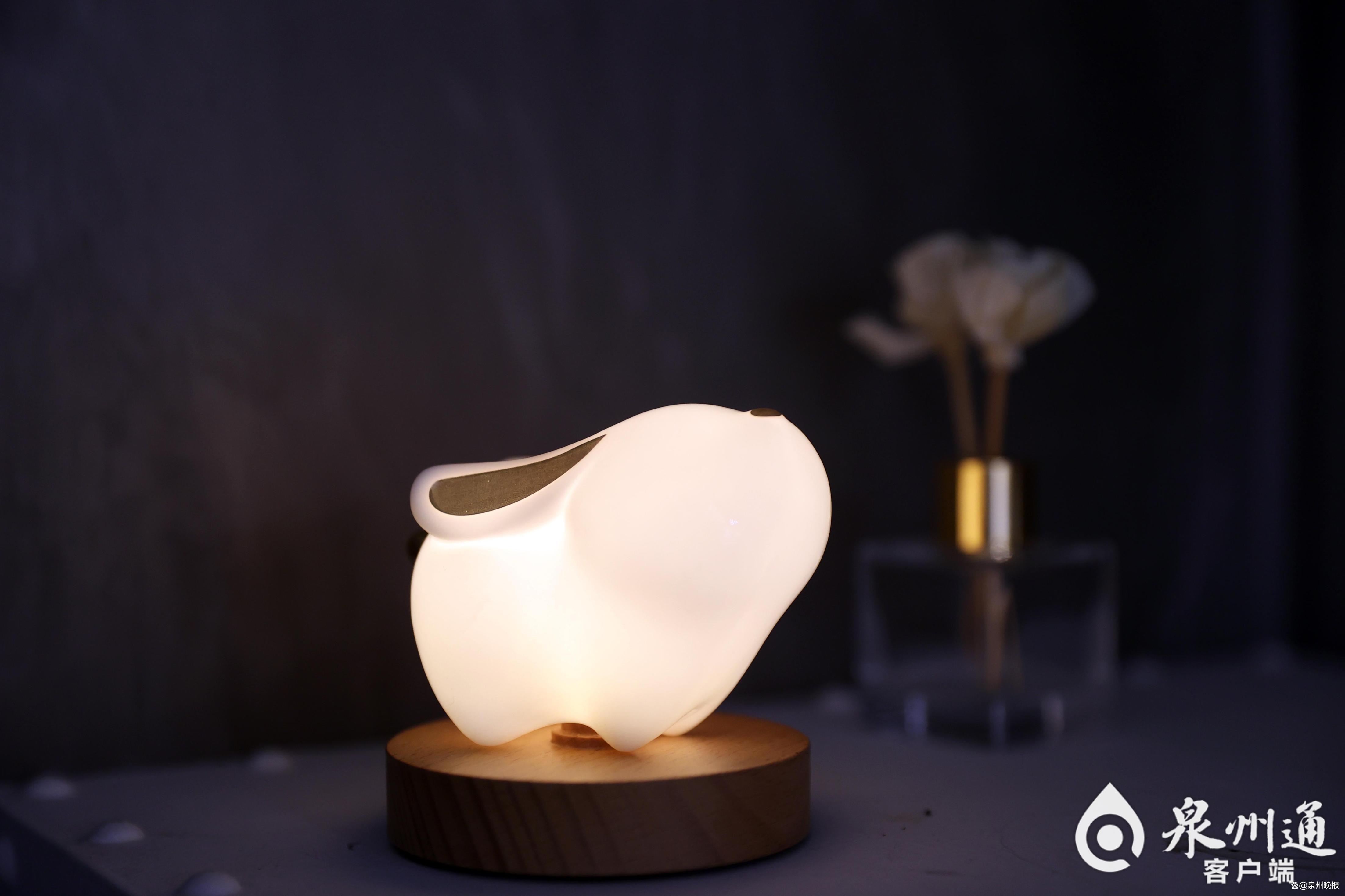 仟信慈艺创始人、首席设计师苏巧龙则将传统兔儿爷与戏曲文化、国潮文化、储蓄文化融合再造,创作出一系列憨萌有趣的兔型陶瓷储钱罐《小白兔》《大白兔》等。除此之外,他还将实木与陶瓷相结合,创作设计一款兔子造型的小夜灯《拍拍兔》,兔子造型是公司原创形象“乐小兔”,材质是德化传统的建白瓷,瓷色宛如象牙,兔子长长的耳朵和小小的鼻子采用描金装饰。这款产品推出后,迅速在市场走红。