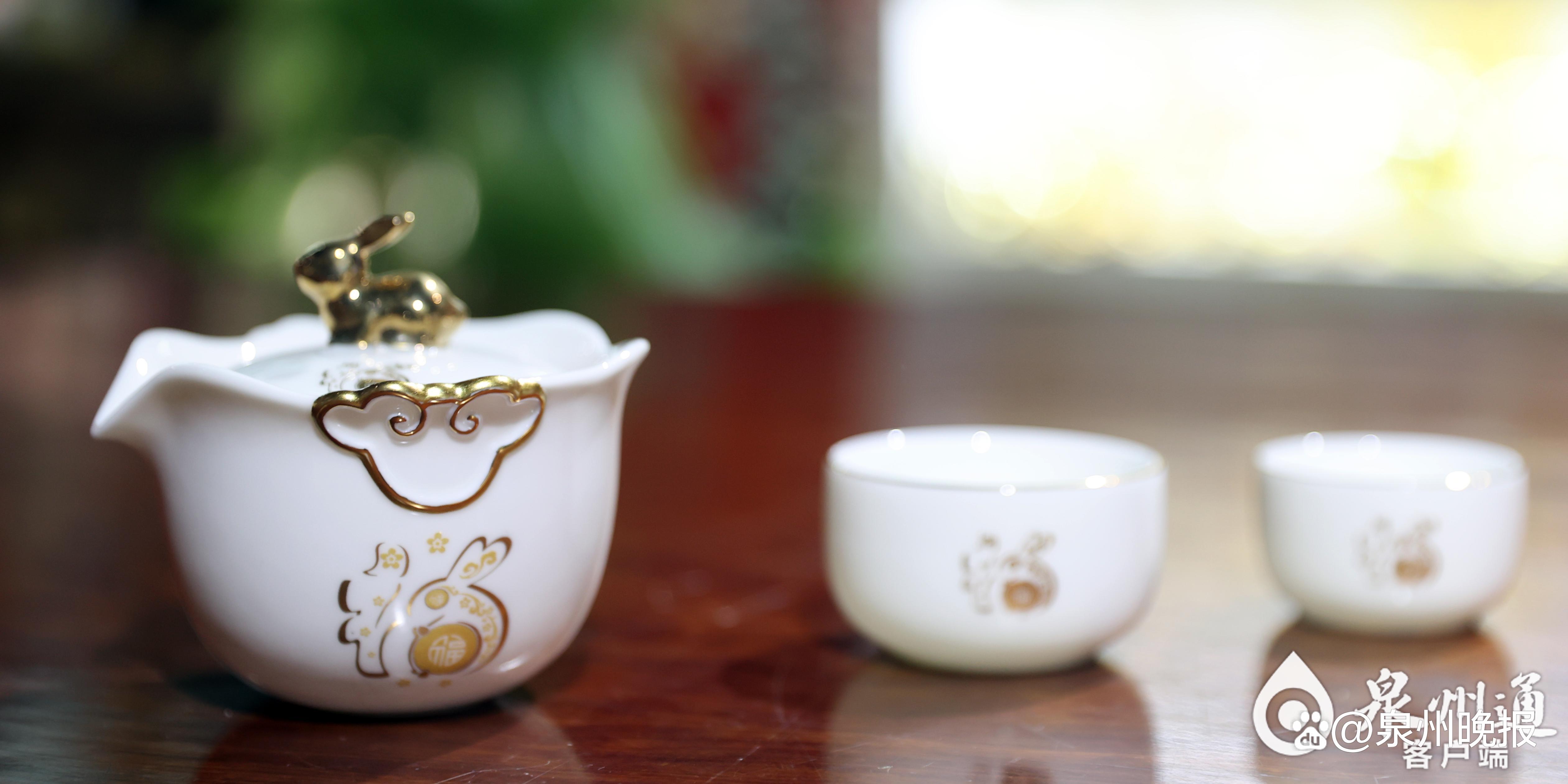 以往很多时候,设计者们创作出来的生肖瓷多以摆件为主。而今年德化生产的兔年生肖瓷中,就有不少日用品系列。