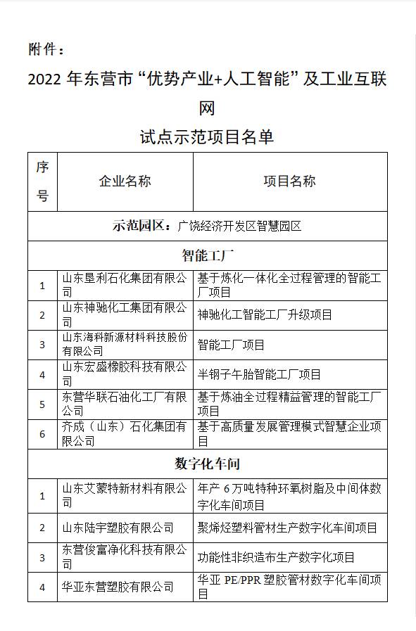 据悉,今年以来,由市工业和信息化局牵头,有关部门共同参与、密切配合,认真落实《东营市“优势产业+人工智能”三年行动计划2022年度工作实施方案》《关于促进工业互联网加快发展的若干措施》等文件精神,按照试点示范项目认定标准,组织开展了项目培育和认定工作,全年共打造41个试点示范项目。