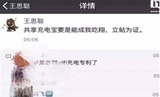2017年5月,王思聪在自己的朋友圈立帖,直言“共享充电宝要是能成我吃翔!”由此可见其对共享充电宝行业不看好的决心。
