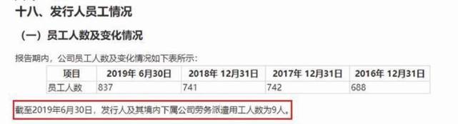 公司于2019年12月披露的招股书显示,截至2019年6月30日,公司及其境内下属公司劳务派遣用工人数为9人(见图六)。此后在2021年被否前的2021年3月招股书上会稿中披露,截至2020年12月31日,公司及其境内下属公司劳务派遣用工人数为16人(见图七)。