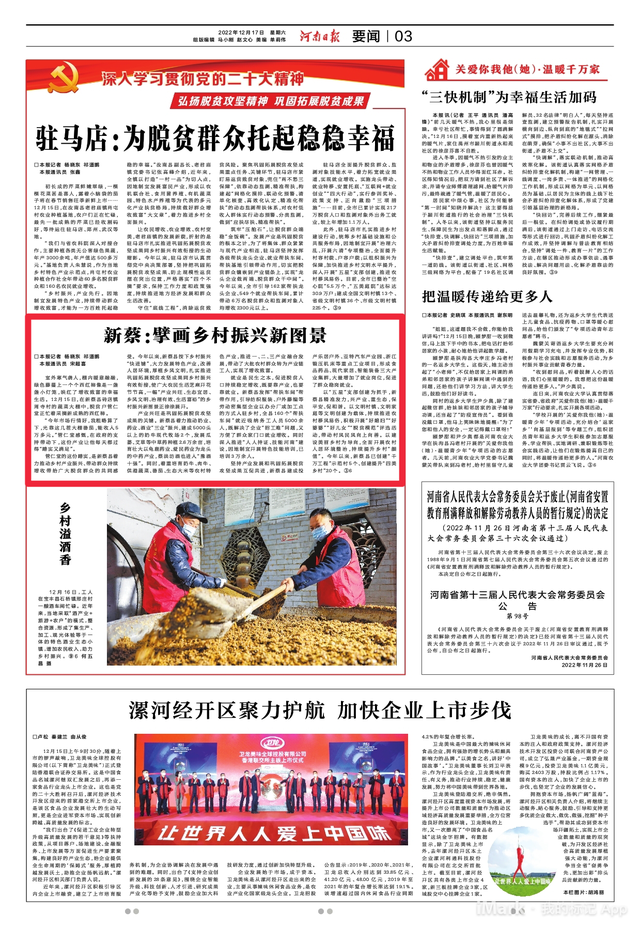 坚持产业发展和巩固拓展脱贫攻坚成果互促共进,新蔡县建成投产乐居户外、亚特汽车产业园、浙江锻压机床等重点工业项目,形成食品药品、现代家居、智能装备三大产业集群,大量增加了就业岗位,促进了群众稳岗就业。