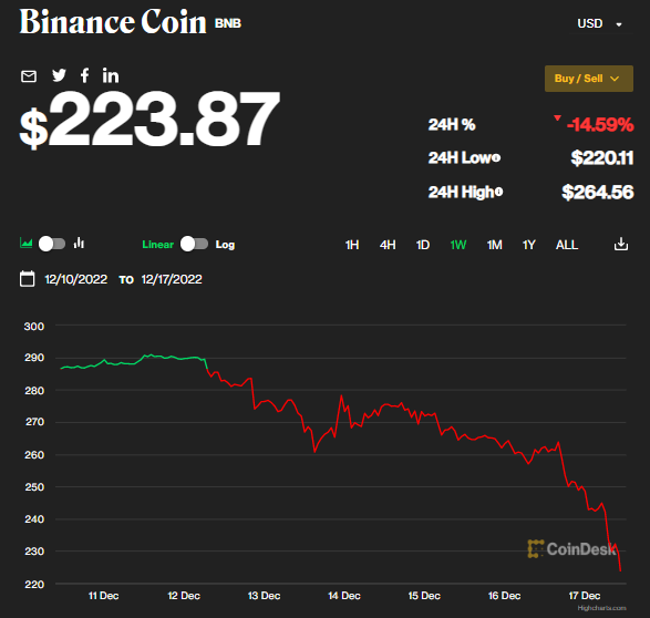值得一提的是,距离FTX的崩盘危机已发生一个月,正当许多人以为其昔日的竞争对手币安可以在加密货币市场“独占鳌头”时,另一场危机似乎正在酝酿之中。数据显示,截至目前,加密货币交易所币安的原生代币BNB在过去一天下跌了近15%,过去一周下跌近21%,是自7月以来的最低水平。投资者12月13日从币安撤出了多达30亿美元的资金。币安首席执行官赵长鹏坚称“一切如常”、“是非常正常的市场行为”。