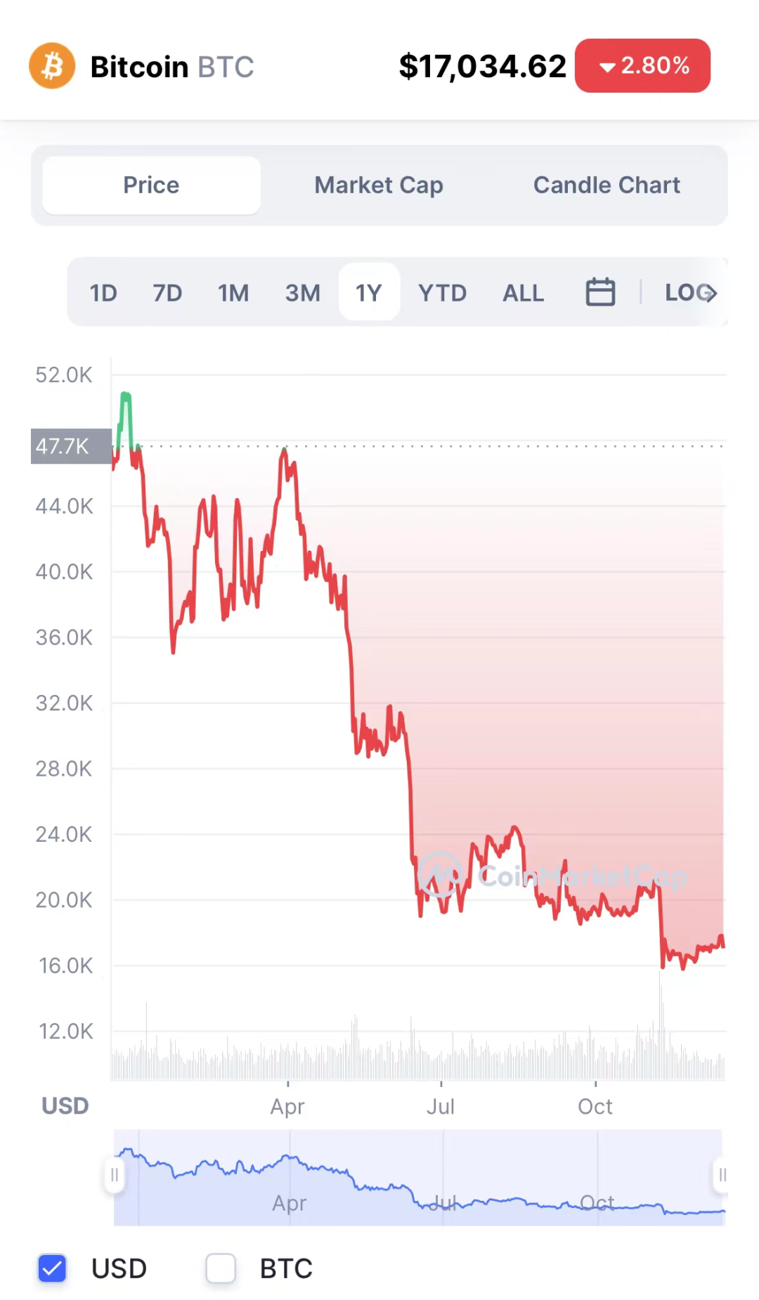 CoinMarketCap数据显示,在今年1月2日达到47343美元的年内最高点之后,比特币价格一路走低。截至12月18日发稿,比特币暂报16719.66美元,创下2020年12月以来的最低水平,今年以来价格累计下跌75%。