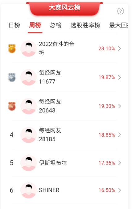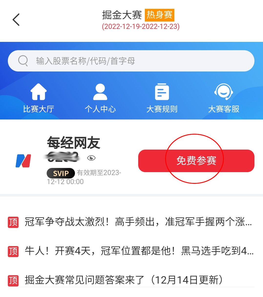 先说一个好消息,掘金大赛第二期热身赛已经在每日经济新闻APP上开始报名,报名时间是12月17日至21日,比赛时间是12月19日~23日,模拟资金为50万元,赛程短,获奖机会多!只要是正收益就有现金奖励!目前,第一期中的前十名优秀选手已报名参赛,今日他们为大家分享了下周的操作计划。