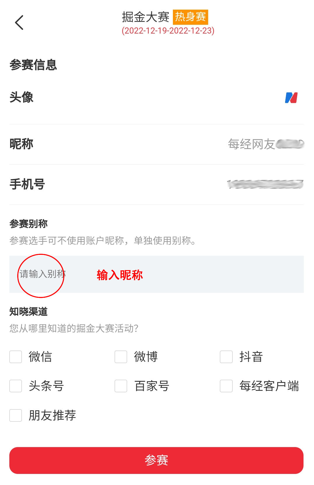 还有一个事要告诉大家,各位在报名的时候可以设一个有趣的昵称。报名方式:掘金大赛/免费参赛/填写昵称后报名。