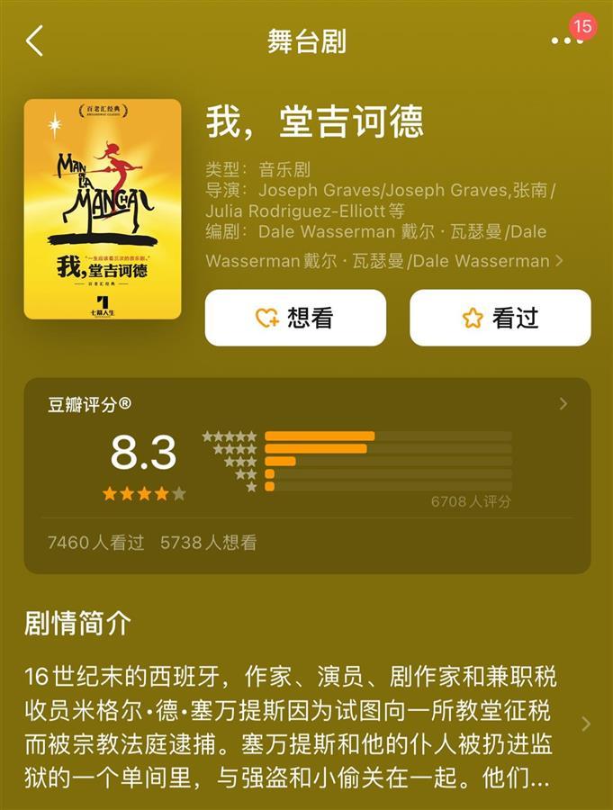 今年10月,百老汇音乐剧《我,堂吉诃德》中文版在琴台大剧院开票时,曾一举成为剧院12月演出中的票房赢家。