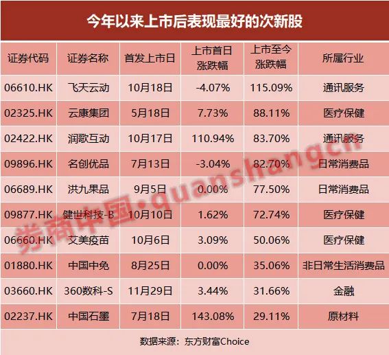 值得一提的是,尽管一些个股上市首日表现不佳,但是在上市后表现出了不错的走势,主要集中在医疗保健、日常消费品等板块。