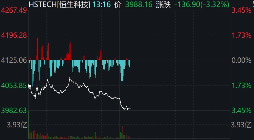 ETF突发 | 恒生科技指数跌超3%,场内ETF集体走弱